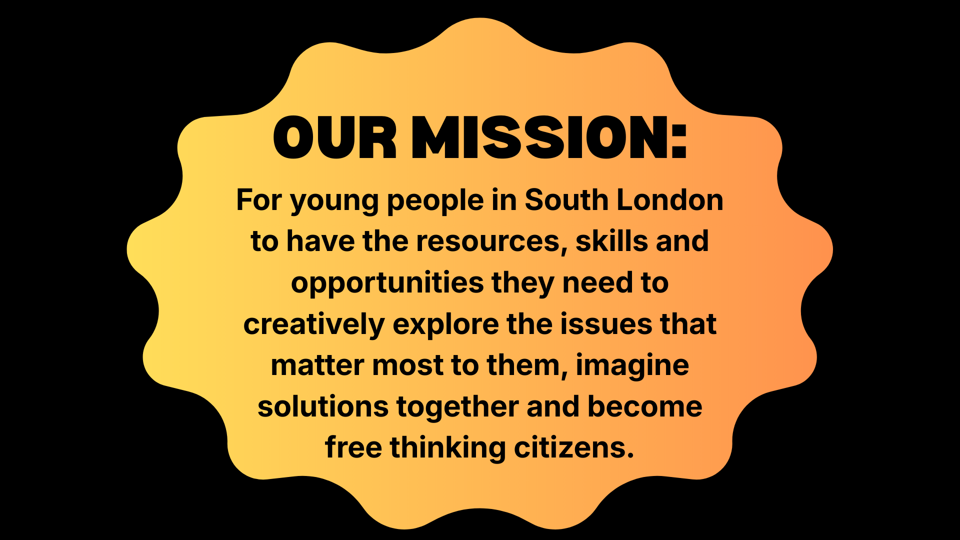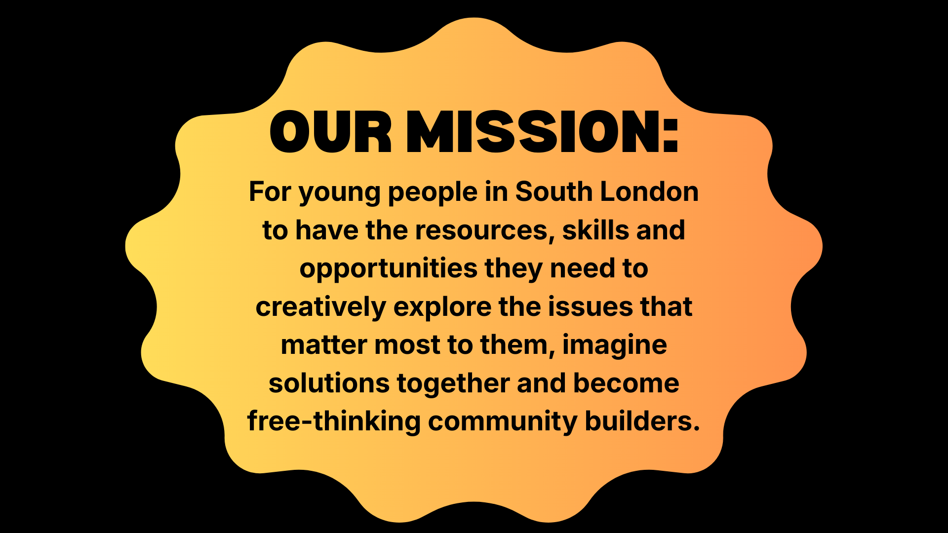 Sounds Like Chaos is a radical youth art collective based in South East London. We make work that is responsive to our time, creating urgent, accessible cultural interventions. We believe in using creativity to come together around the issues that matter most to us and imagine solutions collectively. By challenging existing power structures and sharing new ways of working we can foster positive change for individuals, the creative industries and wider society.